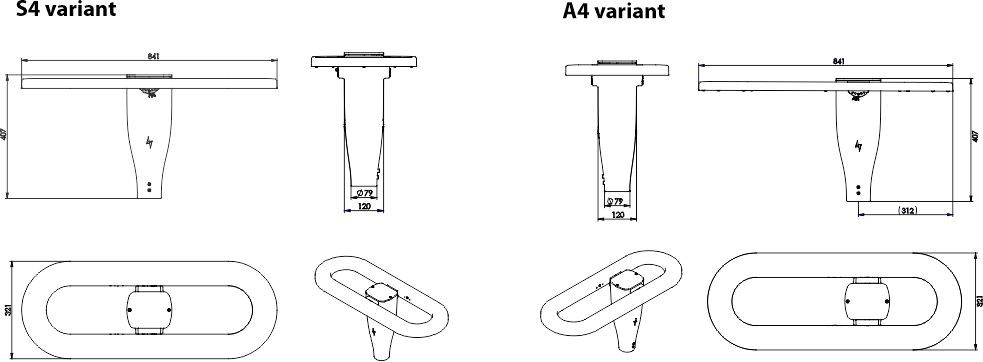 | Variant design of the lamp | center position of the column (S4), offset position of the column (A4) |